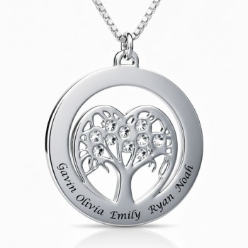 Hart mama ketting met gegraveerde namen en geboortestenen in zilver
