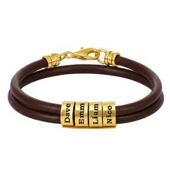 Gevlochten bruine leren armband voor heren - verguld