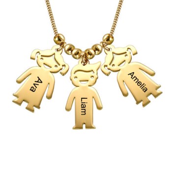 Mama Ketting met Gegraveerde Kinder Hangers verguld