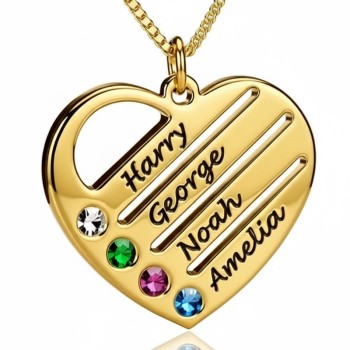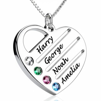 Hart mama ketting met gegraveerde namen en geboortestenen in zilver