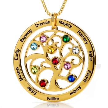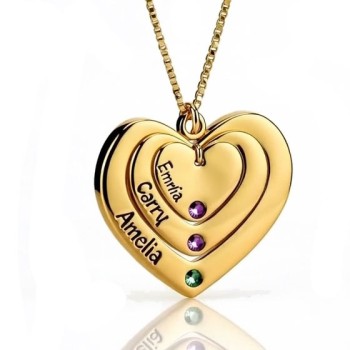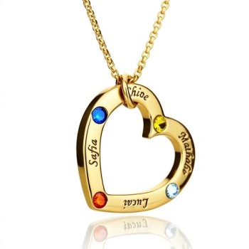 Hart mama ketting met gegraveerde namen en geboortestenen in zilver