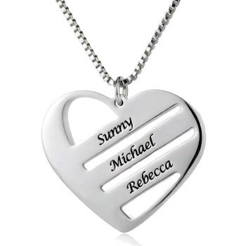 Hart mama ketting met gegraveerde namen en geboortestenen in zilver